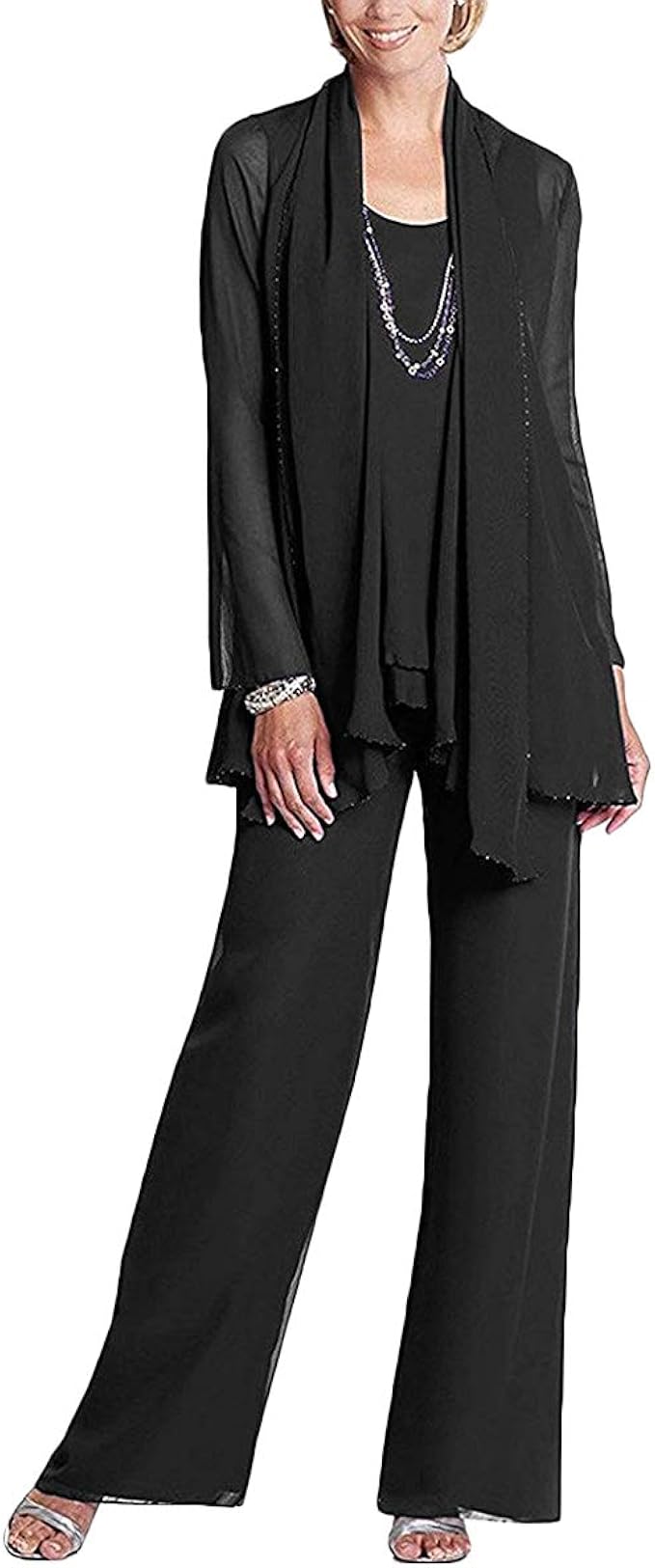 Background. 40+ year old wedding gown transformed into stylish fitted pants and vest. Grandmothers of the bride are frequently captured in candid.